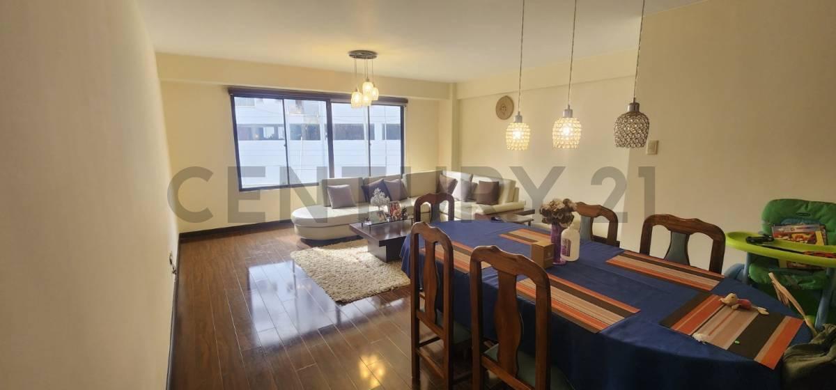 Departamento en Venta, Claveles del Sur segunda terraza a 3 minutos de calle 31 (Hipermaxi) zona Achumani, Piso 1, soleado, orientación habitación principal y living comedor sol de tarde, habitaciones secundarias sol de manana. Superficie 152 M2, incluye un parqueo techado, características: 3 dormitorios, 1 en suite, y 1 bano completo a compartir, sala de estar y una habitación destinada para escritorio, living comedor amplios y con buena vista, cocina integral con espacio para comedor de diario y ambiente de despensa, bano de visitas, habitación de servicio, con bano completo.