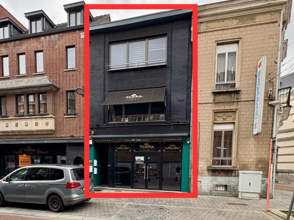 Het pand is verdeeld in een gelijkvloers handelspand en twee appartementen (momenteel verhuurd).